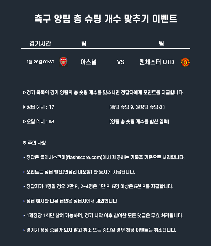 1월26일 포인트 이벤트 축구(양팀 총 슈팅 개수 맞추기)