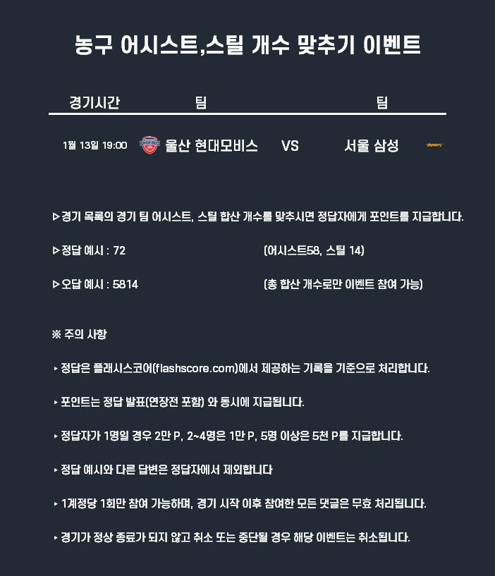 1월13일 포인트 이벤트 농구(어시스트 스틸 개수 맞추기)