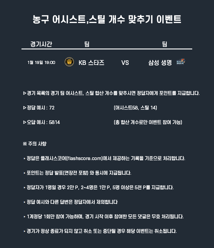 1월19일 포인트 이벤트 농구(어시스트 스틸 개수 맞추기)