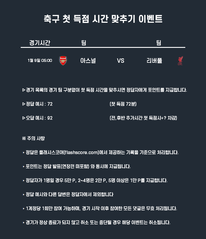 1월9일 포인트 이벤트 축구(첫 득점시간 맞추기)