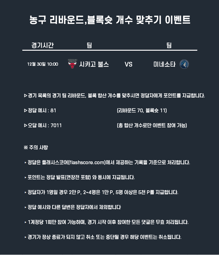 12월30일 포인트 이벤트 농구(리바운드 블록슛 개수 맞추기)