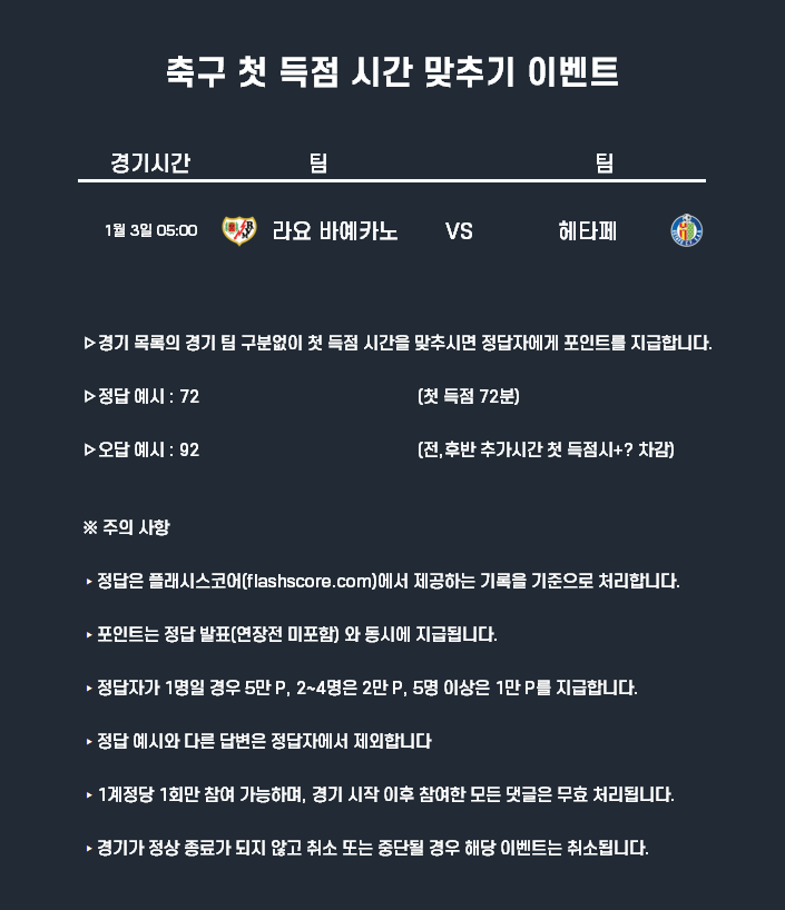 1월3일 포인트 이벤트 축구(첫 득점시간 맞추기)