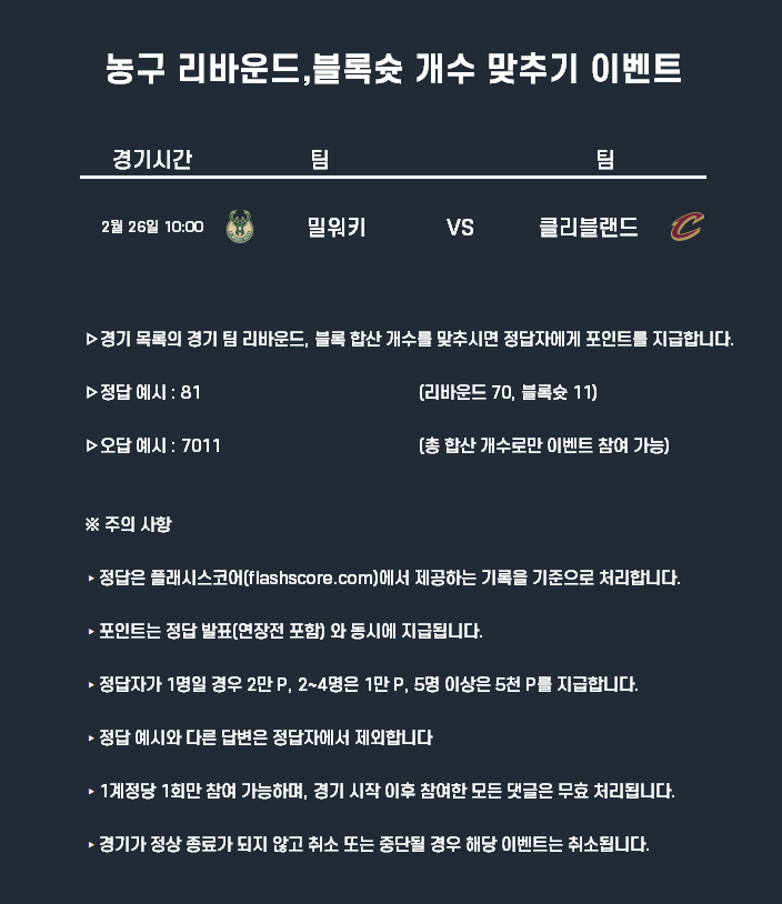 2월26일 포인트 이벤트 농구(리바운드 블록슛 개수 맞추기)