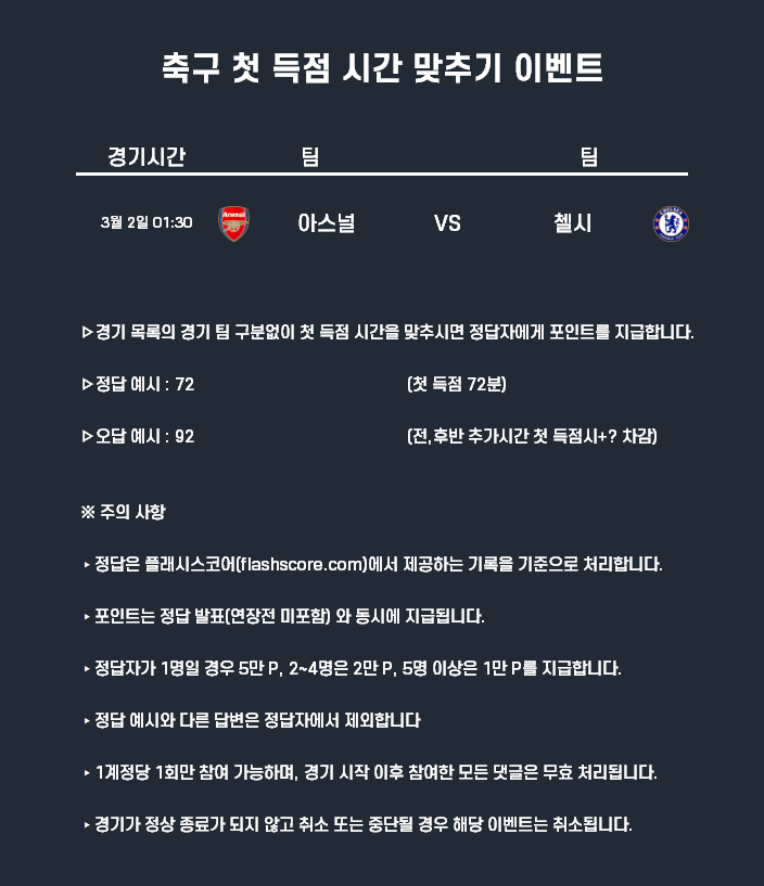 3월2일 포인트 이벤트 축구(첫 득점 시간 맞추기)