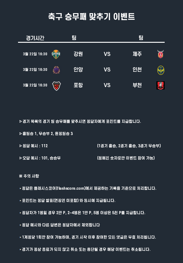 3월22일 포인트 이벤트 축구(승무패 맞추기)