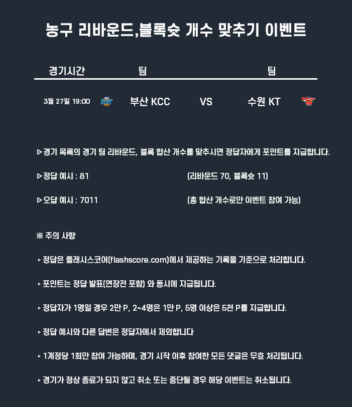 3월27일 포인트 이벤트 농구(리바운드 불록슛 개수 맞추기)