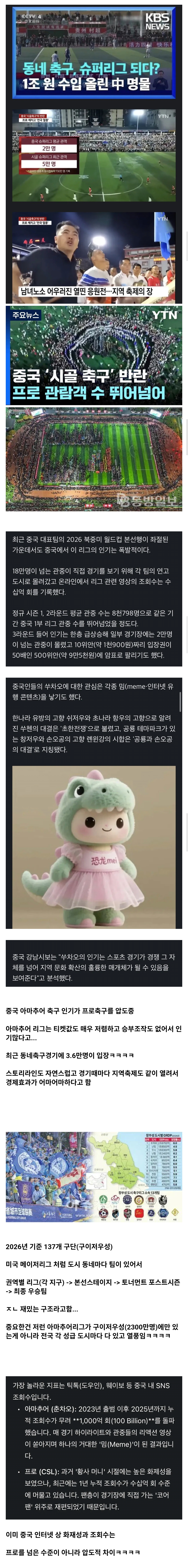 최근 특이하게 흘러가는 중국 축구 인기 구조