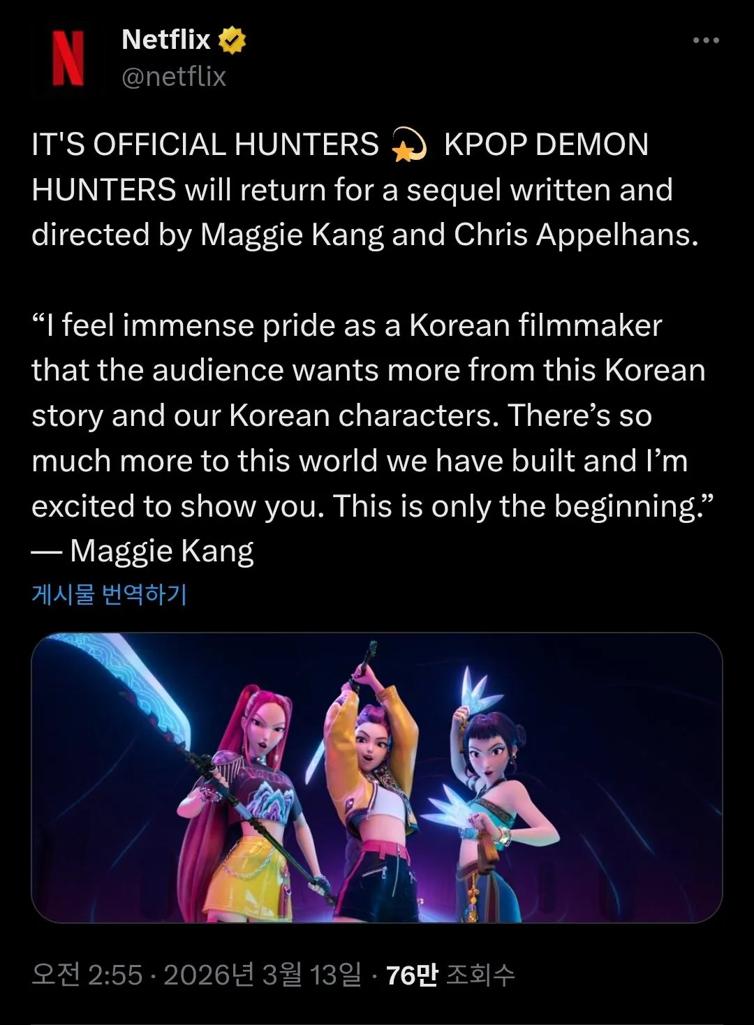 케이팝 데몬 헌터스 속편 확정