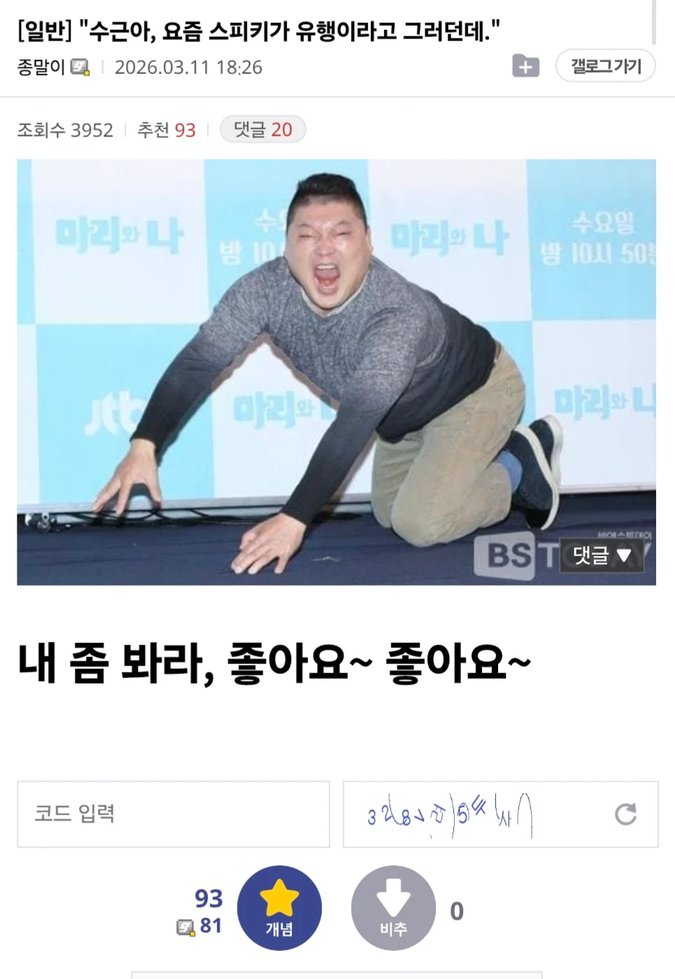 "수근아!! 요즘 스피키가 유행이라고 그러던데"