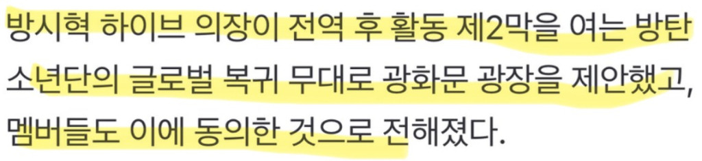방시혁이 먼저 광화문 공연을 제안했고