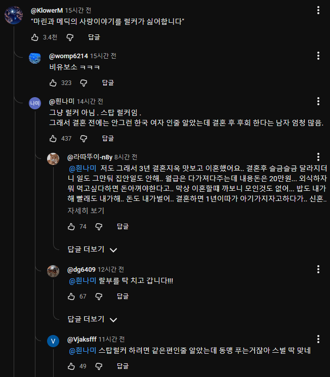 "한국 남자랑 결혼할래" SBS 뉴스 댓글