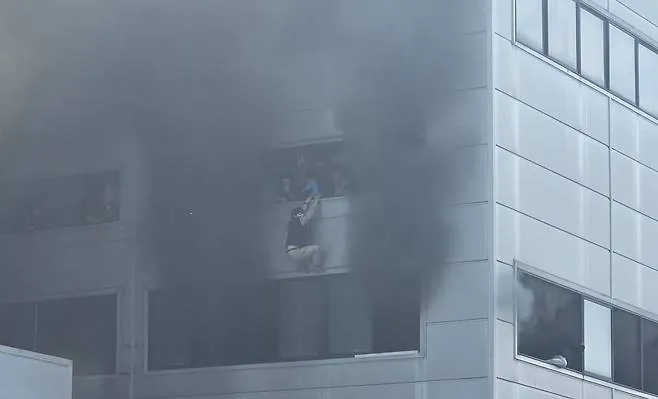 [대전 화재] 창문 밖에 매달려 뛰어내리는 직원들