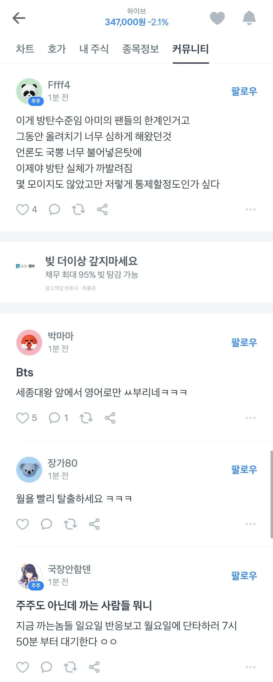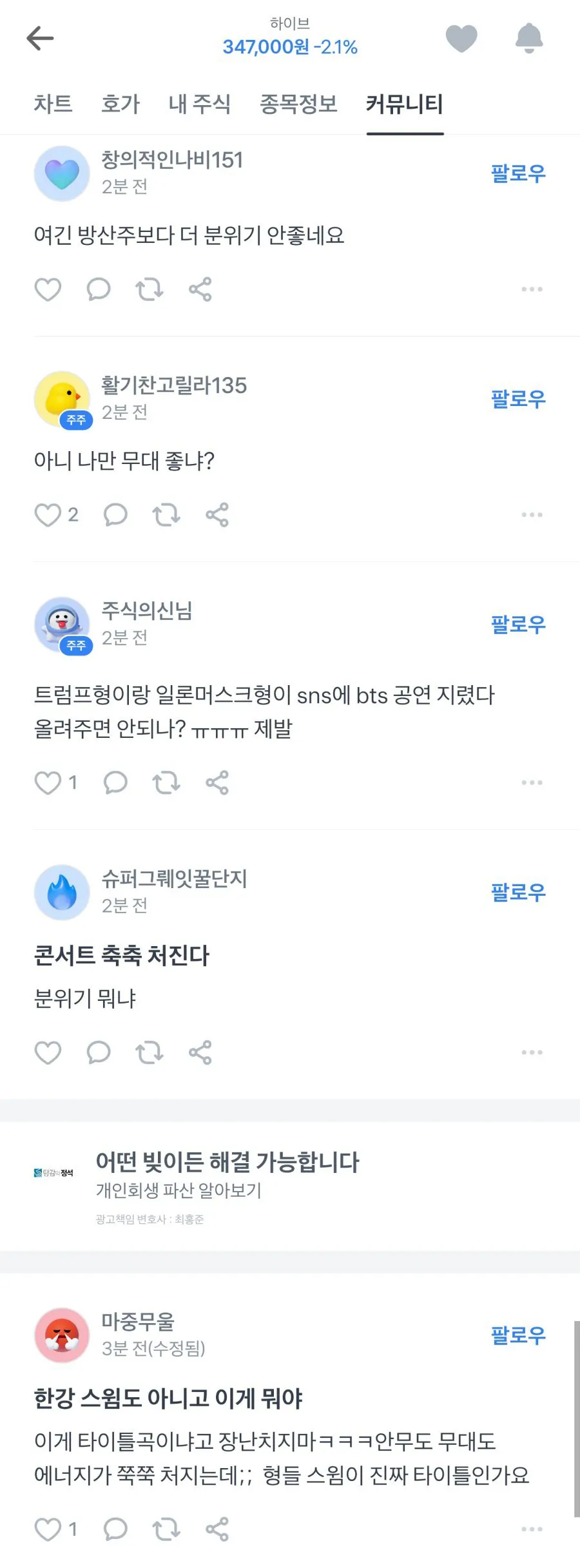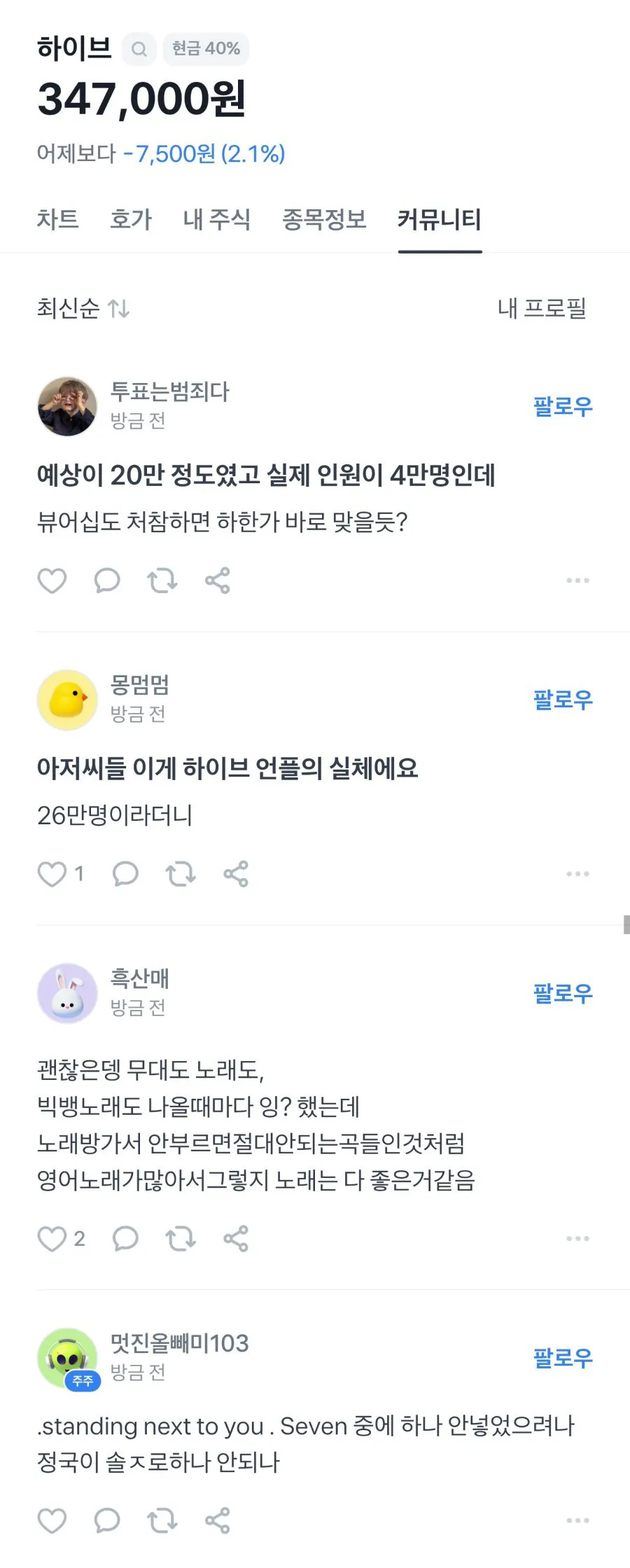 하이브 종토방 반응