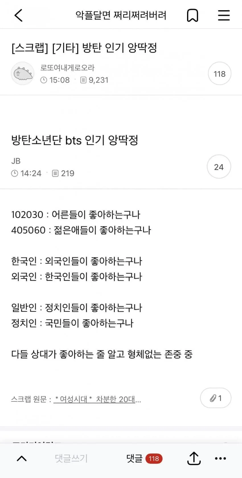 BTS의 인기를 통찰하는 여성시대