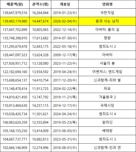 왕사남이 1450만 돌파시 역대 1위 달성이였음 ㅊㅋㅊㅋ