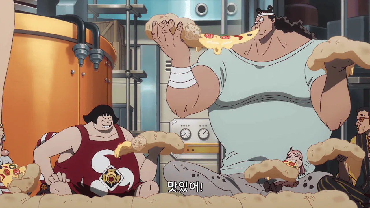 베가펑크, 센토마루, 쿠마, 보니, 키자루 이들 다섯 명은 맛있는 피자를 잔뜩 먹기도 하고
