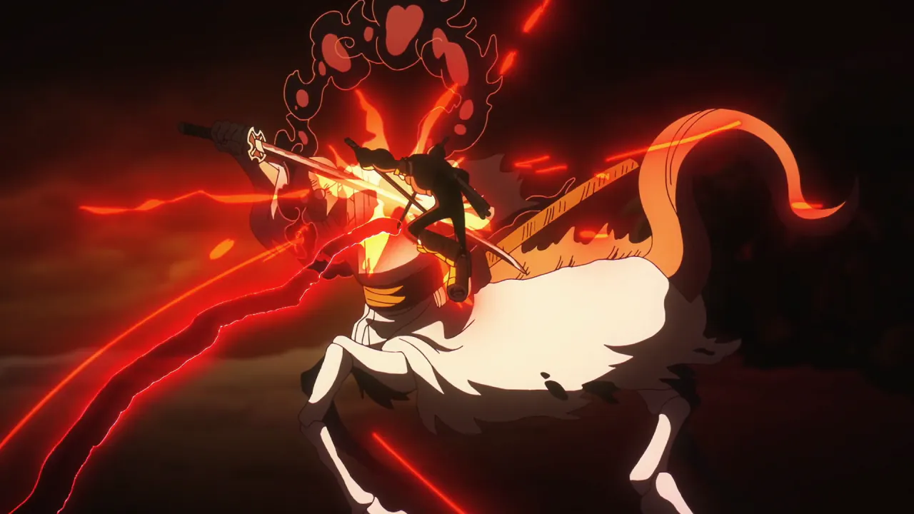 조로와 합을 겨루며 밀짚모자 일당을 위협하는 오로성의 모습.