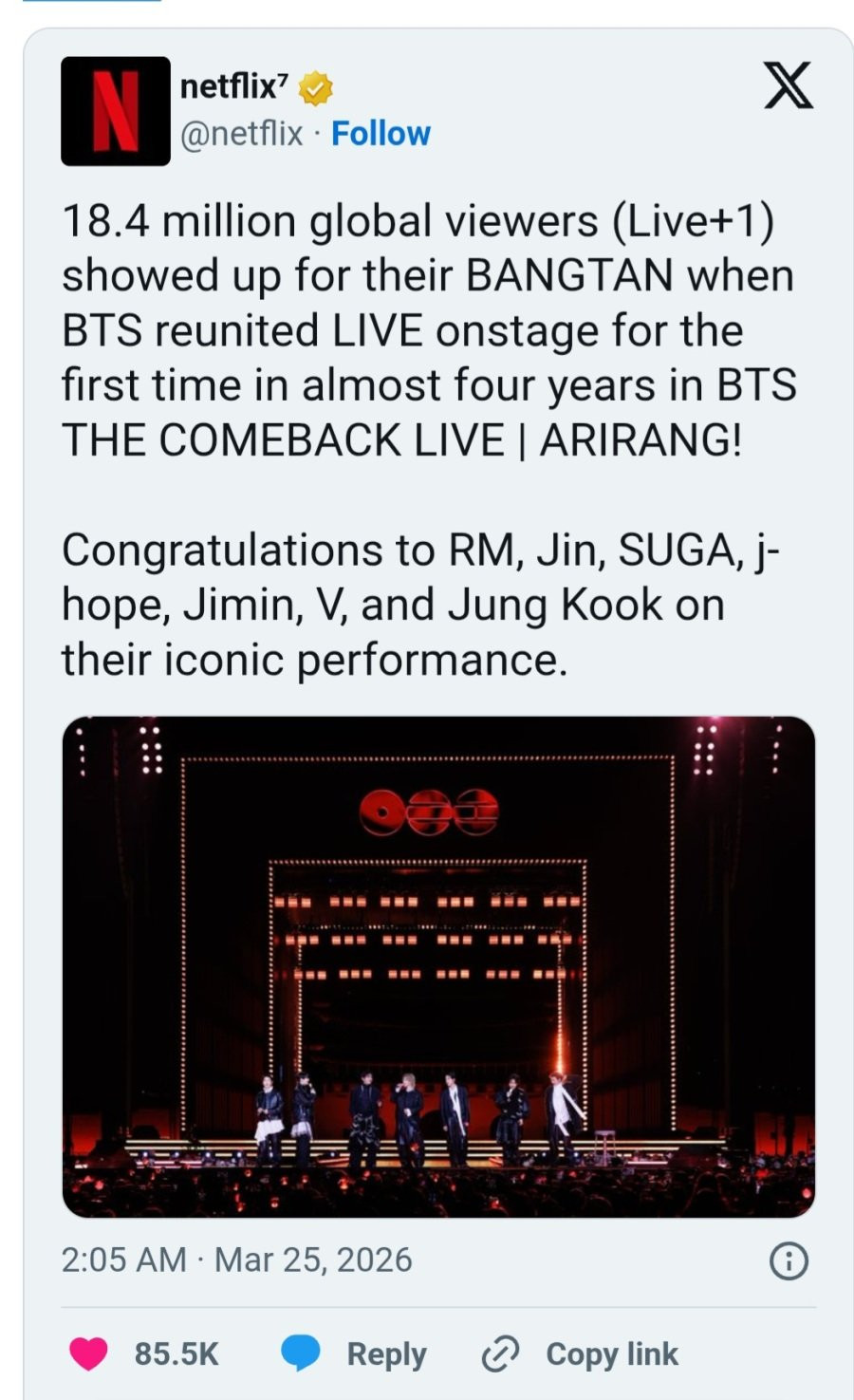 BTS 넷플 컴백라이브 1840만명 시청 ㄷㄷ