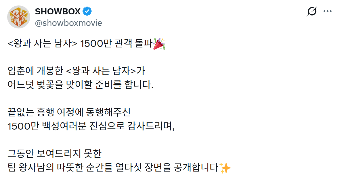 "천만영화" 왕과 사는 남자 관객수 근황