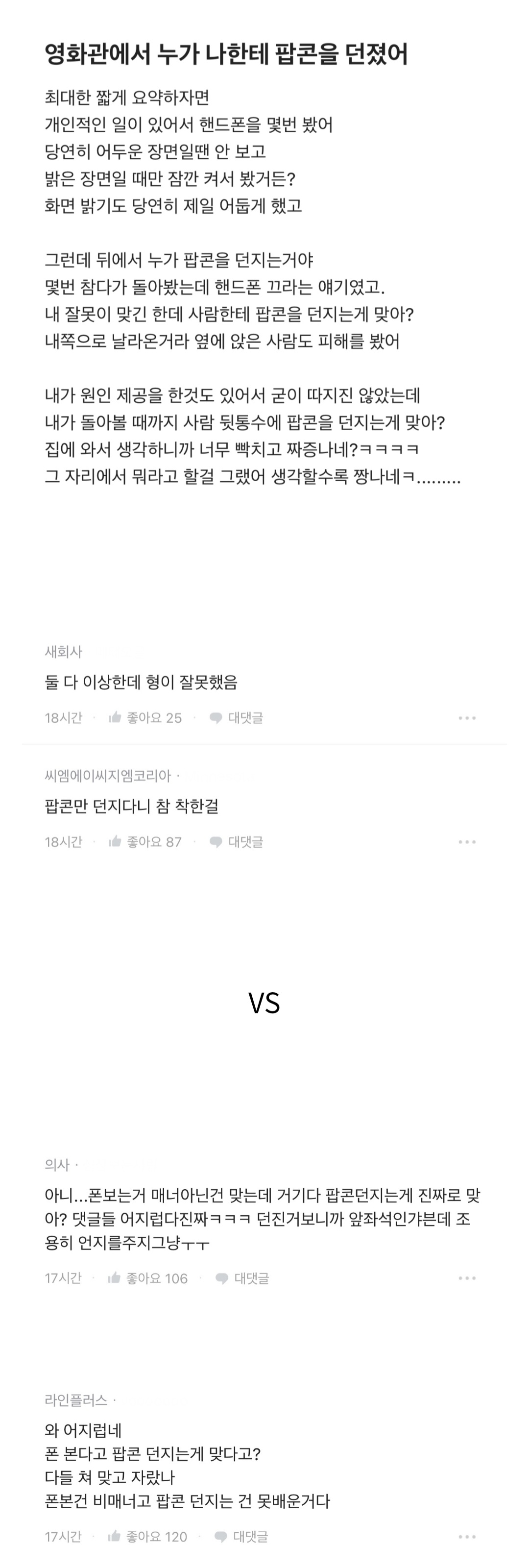 영화관에서 누가 나한테 팝콘을 던졌어