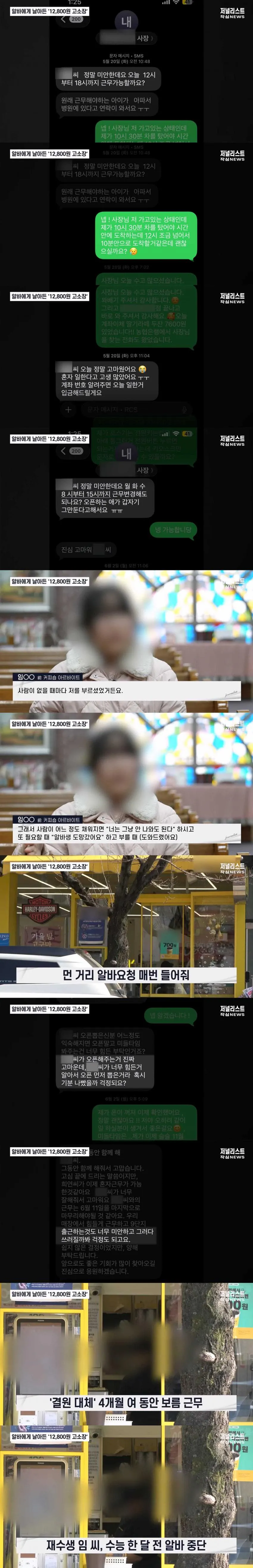 알바는 인력이 부족할 때마다 점주의 요청으로 급하게 출근해 성실히 일해왔음