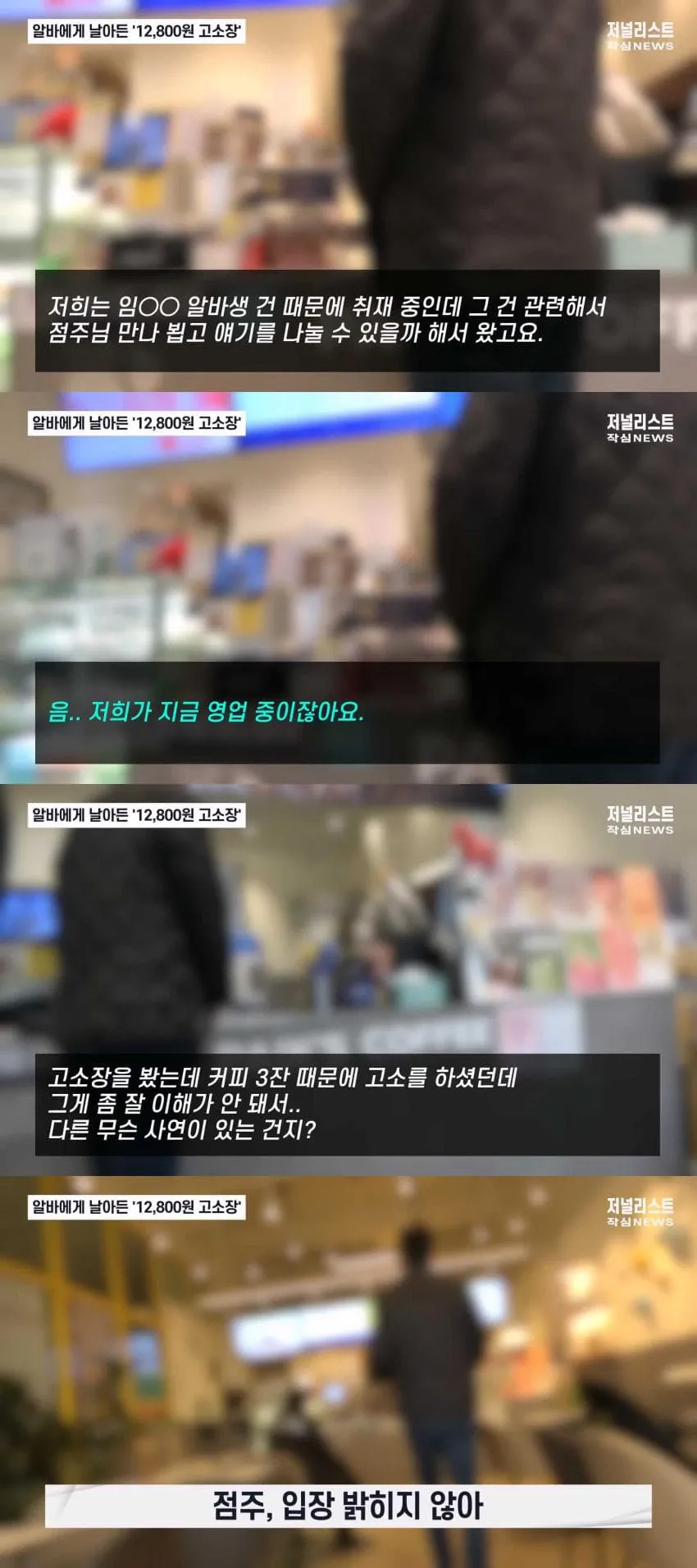 위 사건 이전에 일했던 다른 커피숍 점주 역시 알바를 압박함.