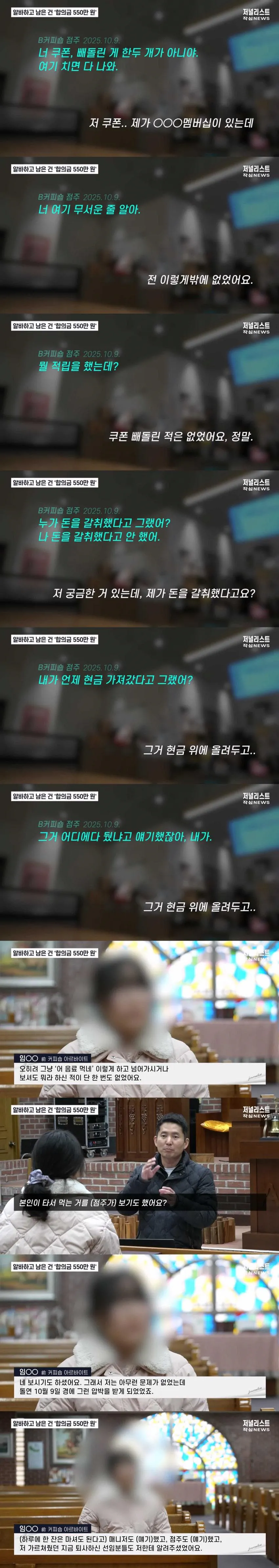 수능을 한 달 앞둔 시점에 점주는 알바를 불러 '쿠폰 부정 적립', '현금 절도', '무단 음료 취식' 의혹을 제기