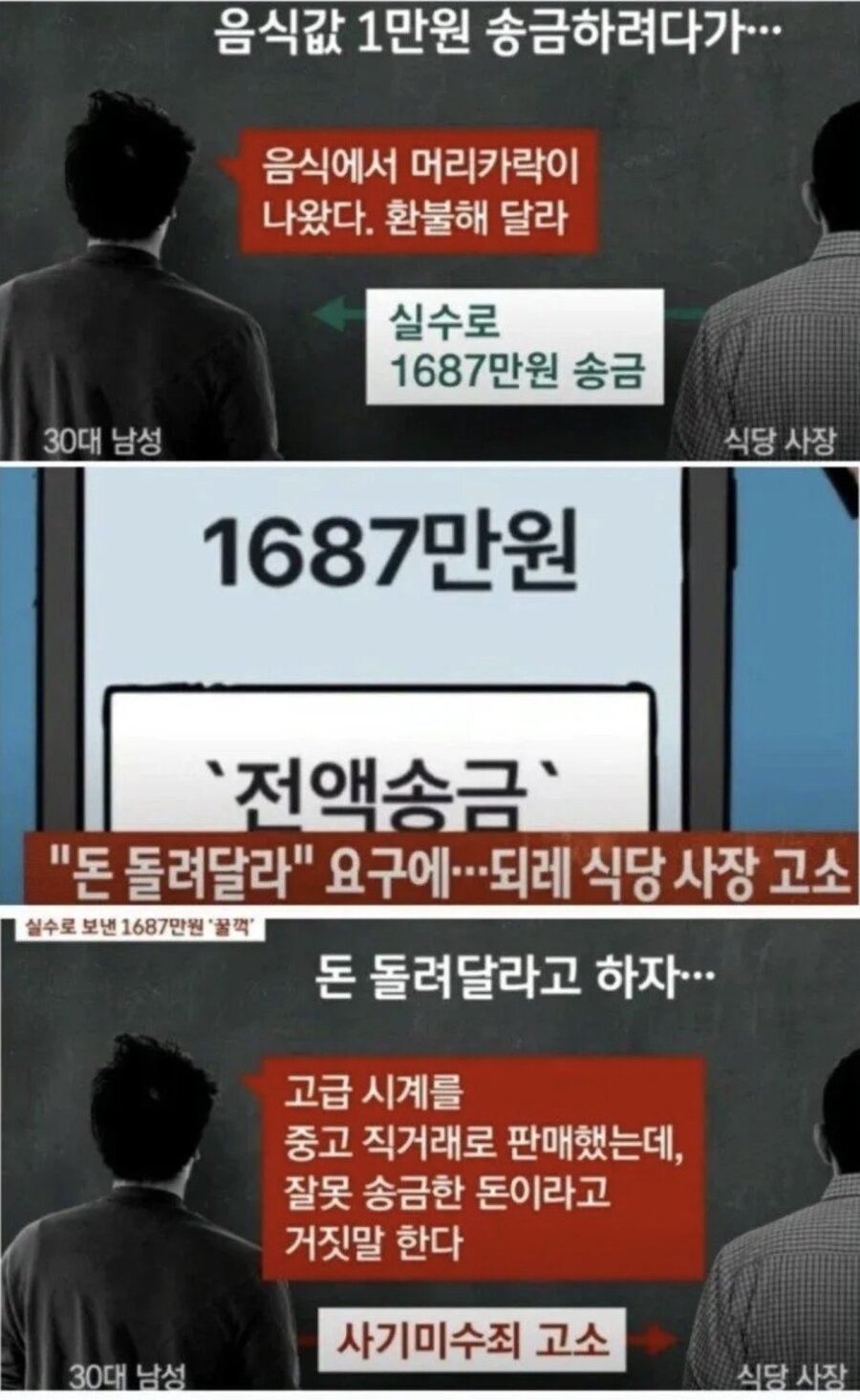 음식값 1만원 송금하려다가 실수로