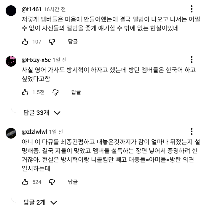 다큐에서 공개된 방시혁과 bts 멤버들의 논의과정