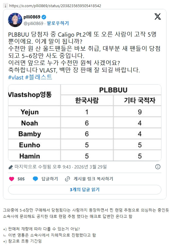 그나마 겨우 겹친 사람들은 3회 이하로만 당첨된 기록이 있어서 3회 이상 당첨 기록이 있는 사람은 아예 명단에서 제외된 것 같다는 말까지 나온 상황임