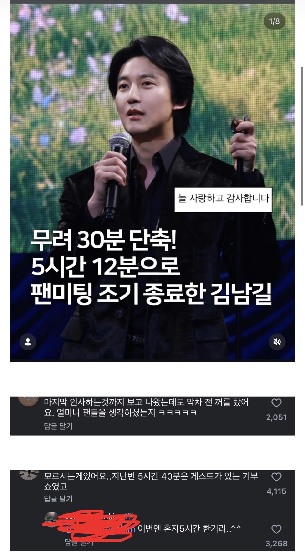 김남길 팬미팅이 지난번보다 30분 짧게 조기종료 했다고 함