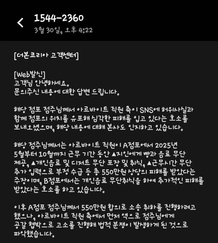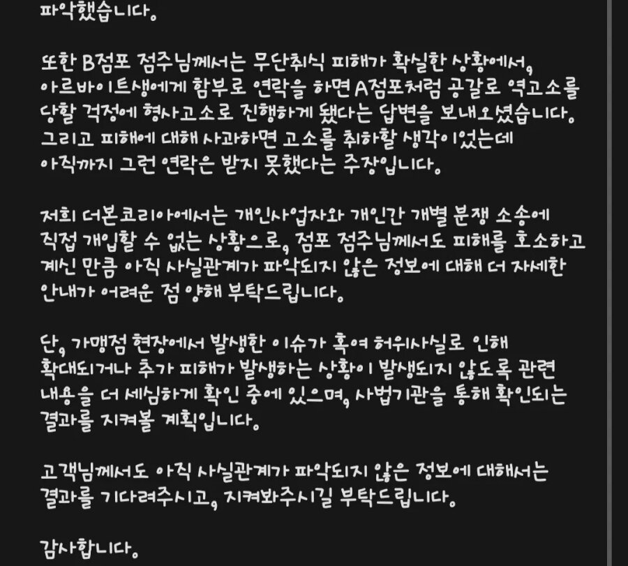 빽다방 알바 횡령 고소 사건...더본 코리아 입장