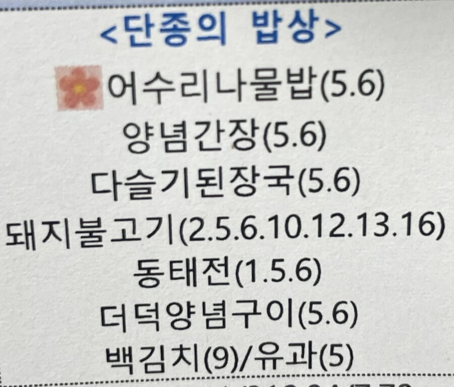 학교 급식에 나온 <단종의 밥상>