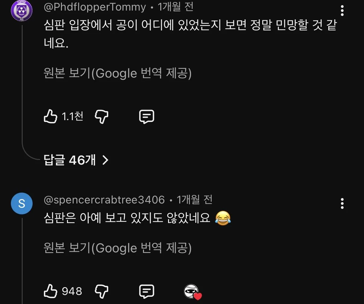 거의 대부분의 댓글이 심판욕 + abs찬양 중