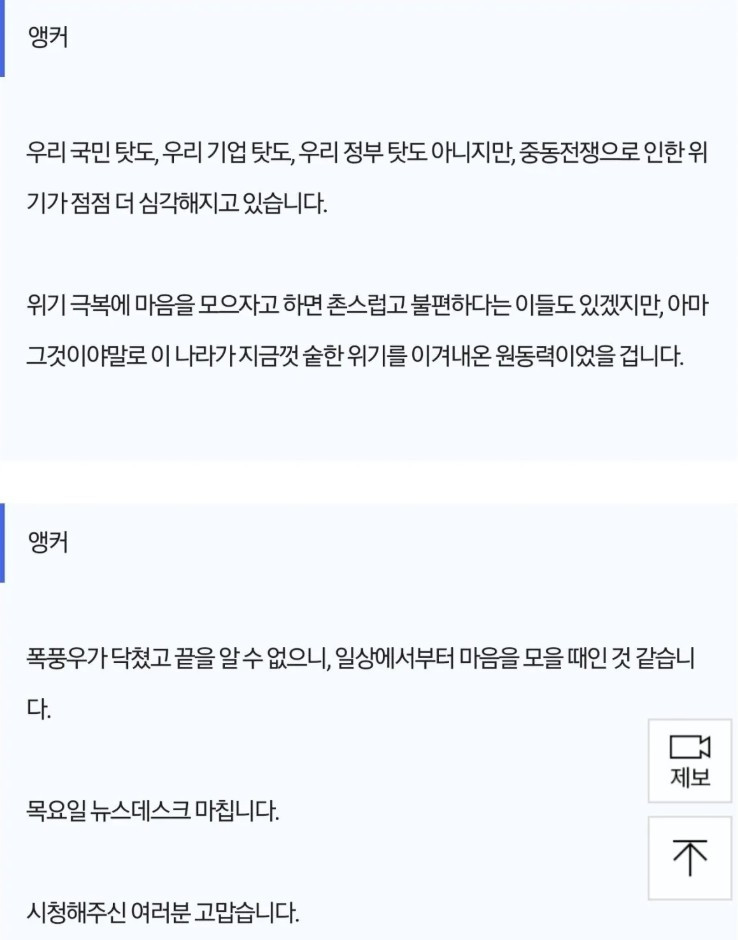 클로징 멘트 더듬을 때 앵커 표정