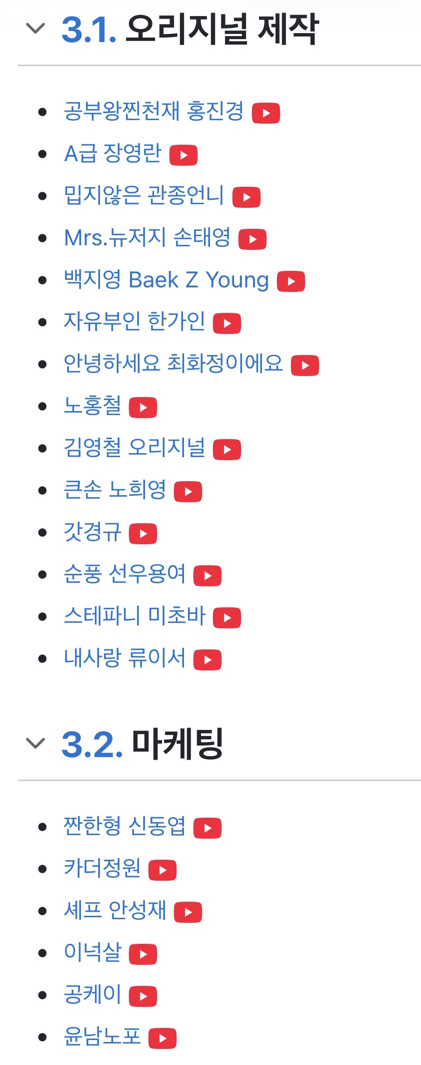 (마케팅이라 나온 채널들은 제작사 따로 있음 마케팅만 맡은 거)