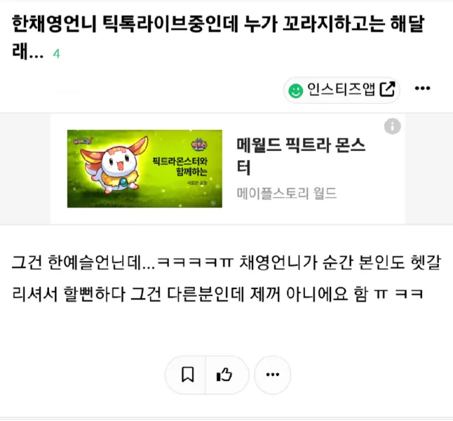 그 와중에 어떤 시청자가 한예슬과 한채영이 헷갈려서