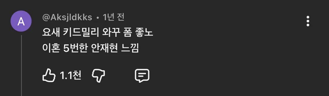요새 키드밀리 와꾸 폼 좋네라는 유튜브 댓글