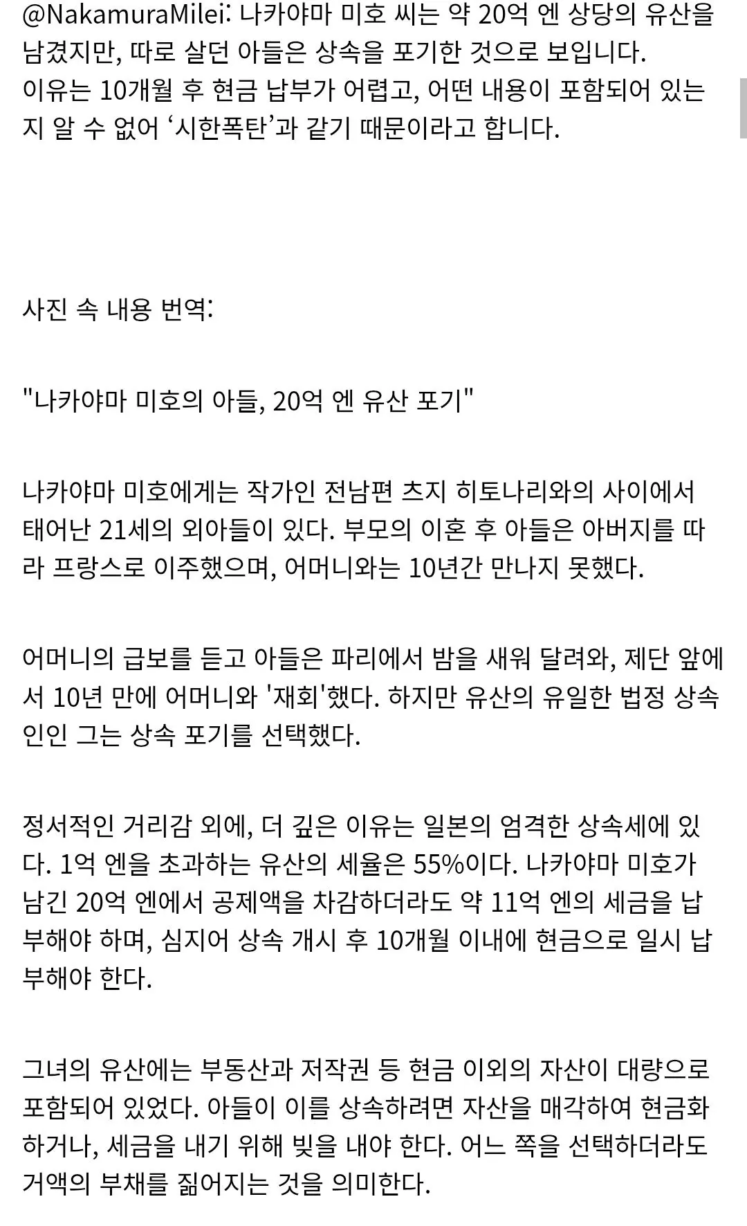 영화 "러브레터"의 나카야마 미호 아들 200억 상속포기