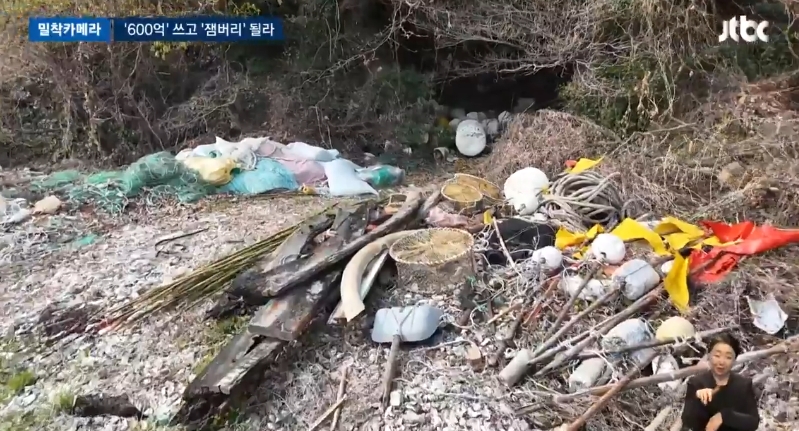 해안가를 따라 쭉 이어진 생활 쓰레기들, 불법 소각 흔적도 보입니다.
