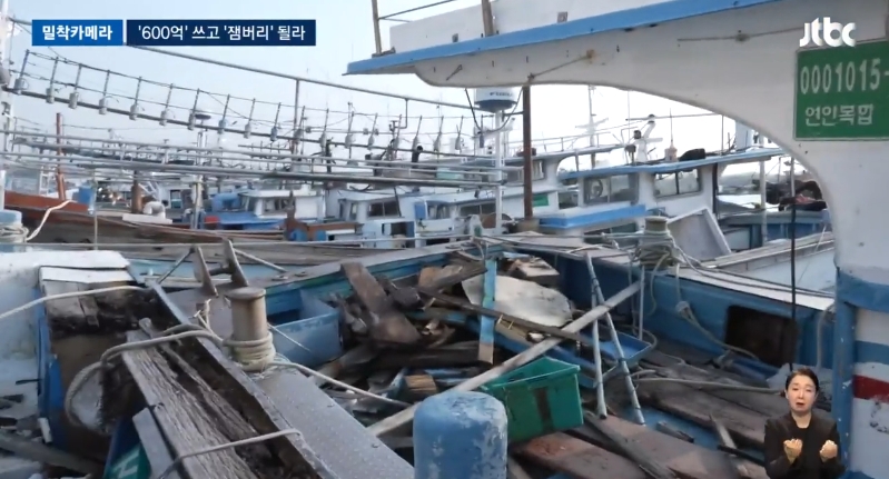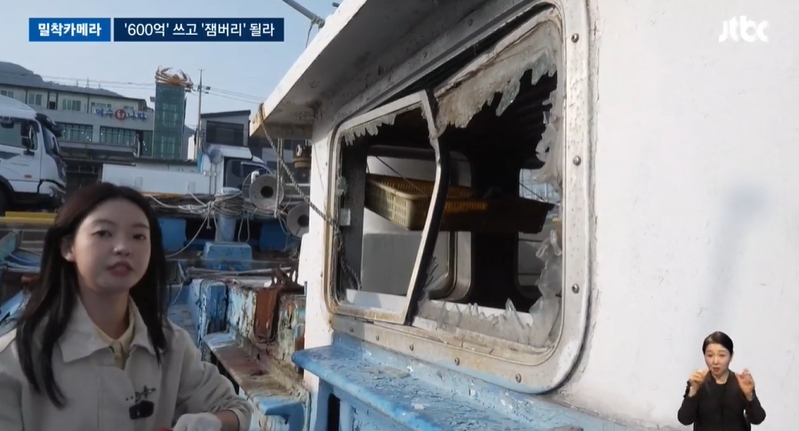 이 조타실에도 창문이 깨진 채 안에가 텅 비어 있습니다. 그런데 이런 선박이 한두 척이 아닙니다.
