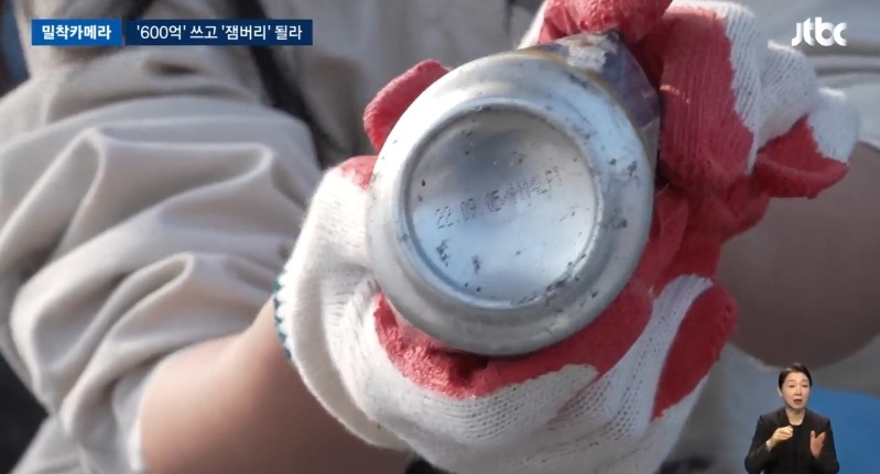 바닥에 보시면 썩은 나무판자랑 플라스틱 쓰레기들이 널브러져 있는데, 이 맥주 캔을 보시면요.