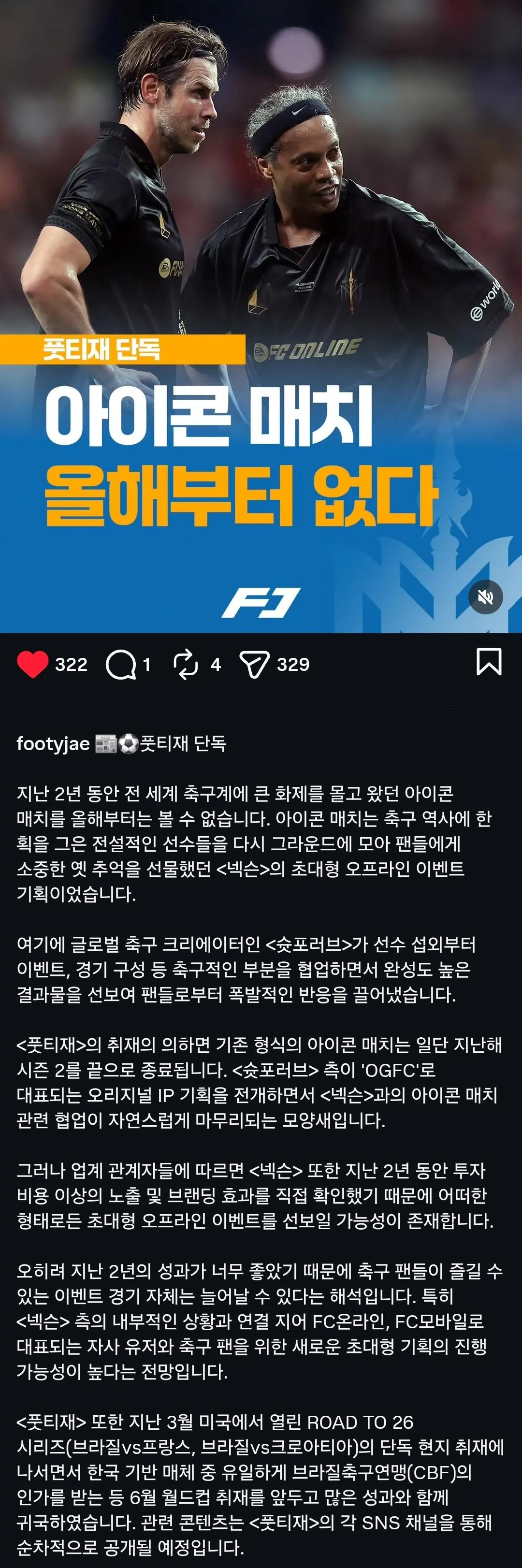 올해부터 넥슨과 슛포러브의 아이콘 매치가 없어질 예정