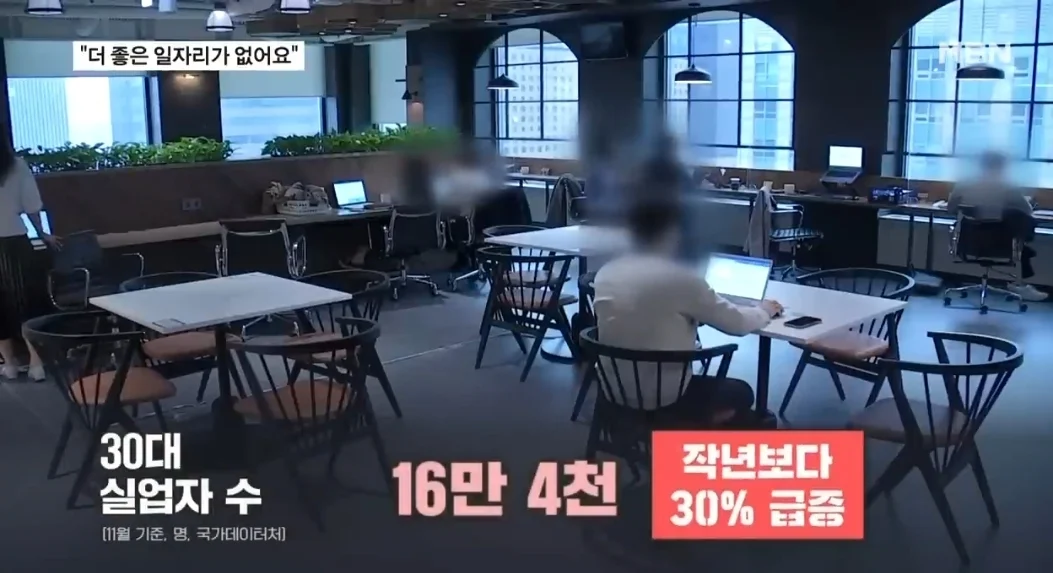 30대 실업자수 지난해보다 30퍼증가