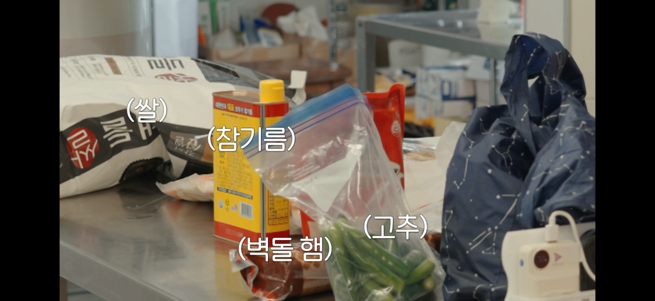 조미료, 쌀, 야채, 냉동 등등 많이도 챙겨가신 모습