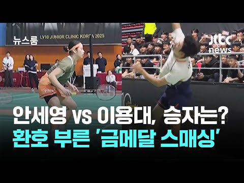 이용대 선수의 뚝 떨어지는 샷에 안세영 선수가 몸을 날립니다. 긴 랠리에서 득점하자 안세영 선수가 주먹을 내지르는데요. 그 어디서도 볼 수 없는 올림픽 금메달리스트들 간 맞대결. 친선경기였지만 서로 봐주는 건 없네요. 15점 내기 승부에선 안세영 팀이 웃었는데요. 선수들은 물론, 이를 직관하게 된 어린 아이들도 신이 났죠. 배드민턴 레전드들은 일대일 족집게 과외도 해줬는데요. 안세영 선수는 정교한 언더핸드 샷의 비밀을 공개했습니다.