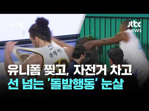 유니폼을 찢고 자전거를 쳐 넘어뜨리는 선수들. 열정일지 흥분일지 모를 돌발 행동이 코트 위 논란을 부르고 있습니다.