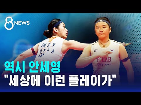 배드민턴 최강, 안세영 선수가 왕중왕전 격인 파이널스 대회에서 시즌 11승을 향해 힘찬 첫발을 내디뎠는데요. 진기명기 플레이를 연발해 감탄을 자아냈습니다. 배정훈 기자입니다.