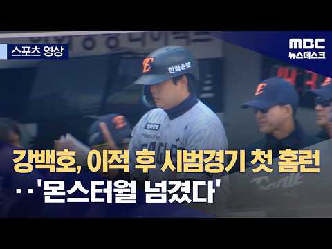 올 시즌 프로야구 한화 유니폼을 입은 강백호 선수가 삼성과의 시범경기에서 이적 첫 홈런을 신고했습니다.