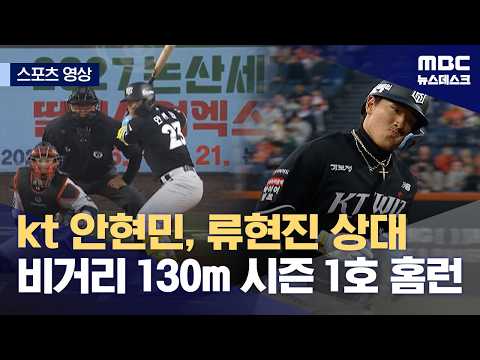 kt 안현민, 류현진 상대 비거리 130m 시즌 1호 홈런